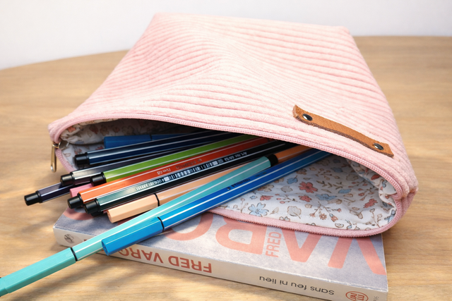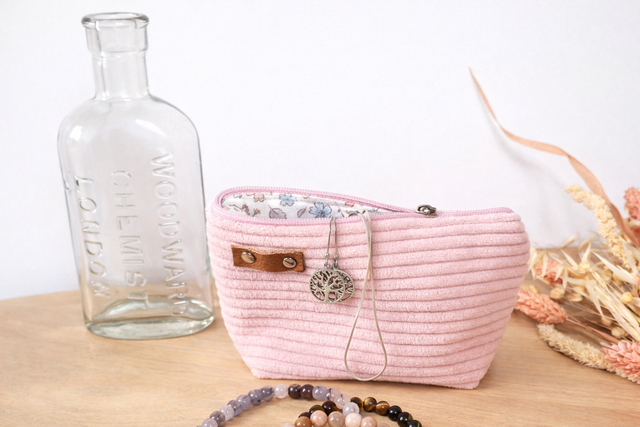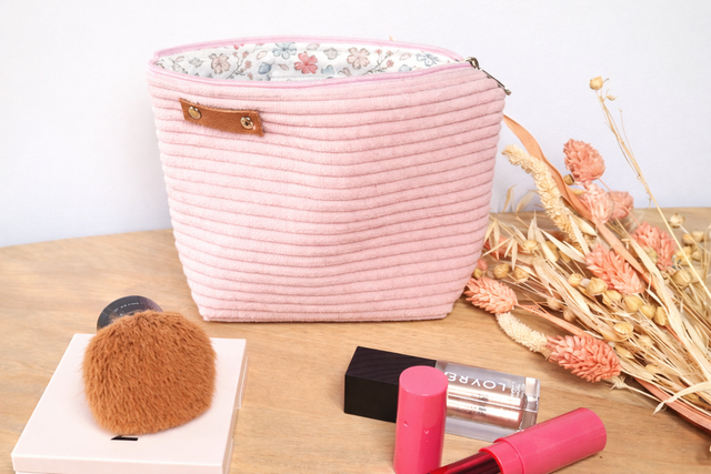 Découvrez la collection "Paris", une ligne de pochettes artisanales "Made in the Baie" alliant la douceur du velours côtelé rose clair à un charme résolument romantique. Pensée pour votre organisation quotidienne, chaque pochette arbore un détail en cuir véritable riveté, gage de finitions soignées et de qualité durable. L’intérieur, entièrement doublé d'un tissu à fleurs délicat, offre un écrin poétique à vos objets les plus précieux.