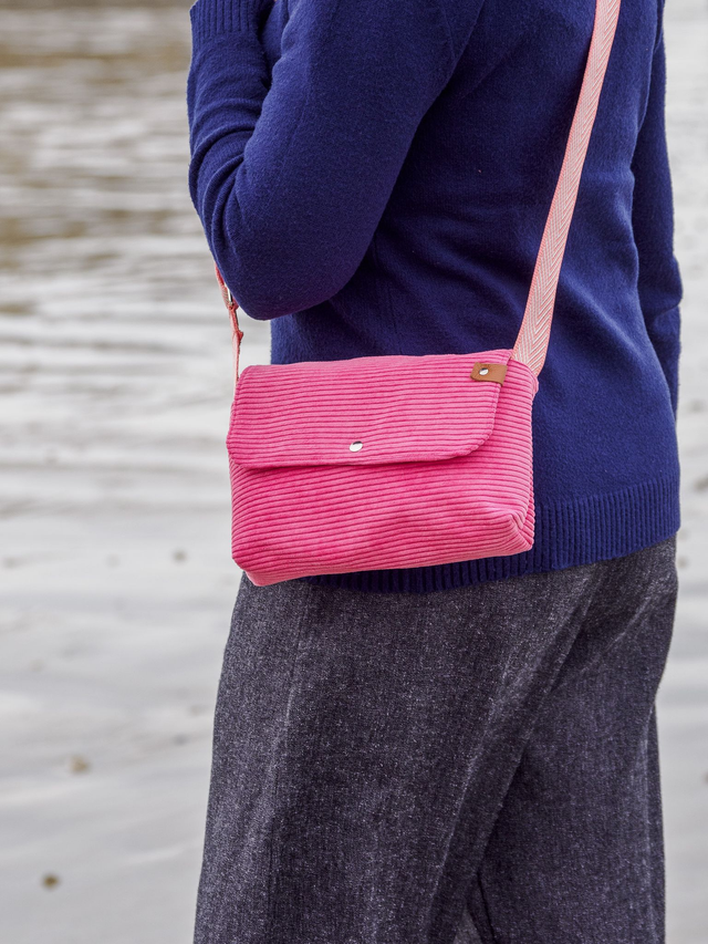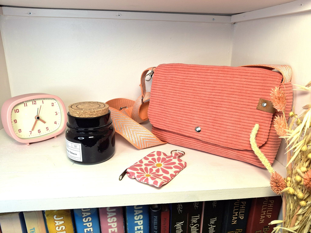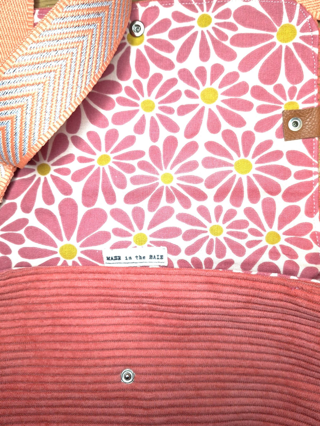 Laissez-vous séduire par le sac à main "San Francisco", une création artisanale "Made in the Baie" unique qui capture l'essence bohème des années 60. Conçu avec un extérieur en velours côtelé corail à la texture douce et résistante, ce sac affiche des dimensions compactes et élégantes (H15 x L22 x P5 cm) idéales pour vos sorties. Sa sangle ajustable vous permet de le porter confortablement à l'épaule ou en bandoulière, s'adaptant ainsi à toutes vos tenues.