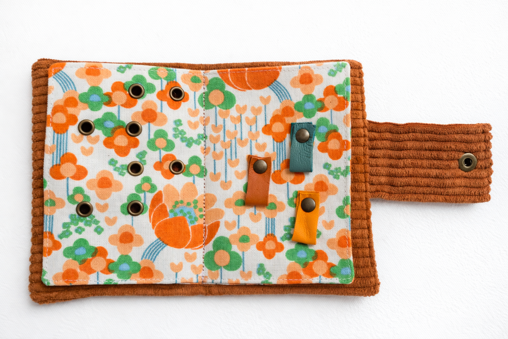 Gardez vos bijoux préférés bien rangés grâce à ce livret à boucles d’oreilles artisanal, idéal pour organiser et transporter vos bijoux sans les emmêler. Compact et pratique, il s’ouvre comme un petit livre et permet d’accrocher facilement puces et créoles grâce à ses œillets et ses languettes en cuir.